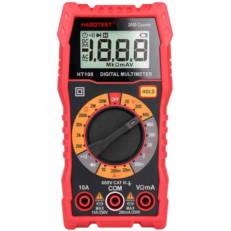 Digitalni univerzalni multimetar Habotest HT108L zgodan je uređaj koji iznenađuje ogromnošću svojih mogućnosti. Omogućuje vam mjerenje s velikom preciznošću, između ostalog, izmjeničnog i istosmjernog napona, otpora, kontinuiteta ili kapacitivnosti. Također vam omogućuje testiranje dioda, a zahvaljujući praktičnim gumbima možete učinkovito odabrati odgovarajuću funkciju.